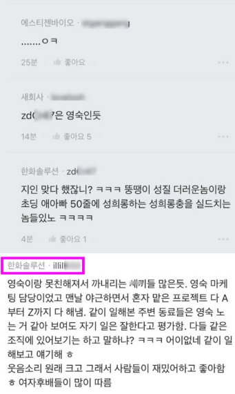 ​김다미와 김효진 느낌이라면서 나는솔로 15기 여자 출연자 영숙을 칭찬하는 댓글을 달았습니다.​​