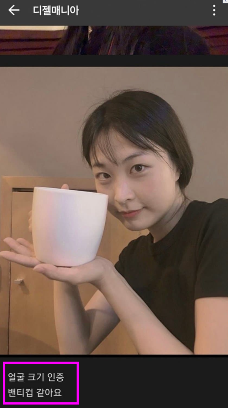 ​다음으로는 얼굴 크기 인증, 벤티컵 같아요라는 내용으로 게시글을 쓰기도 했습니다.