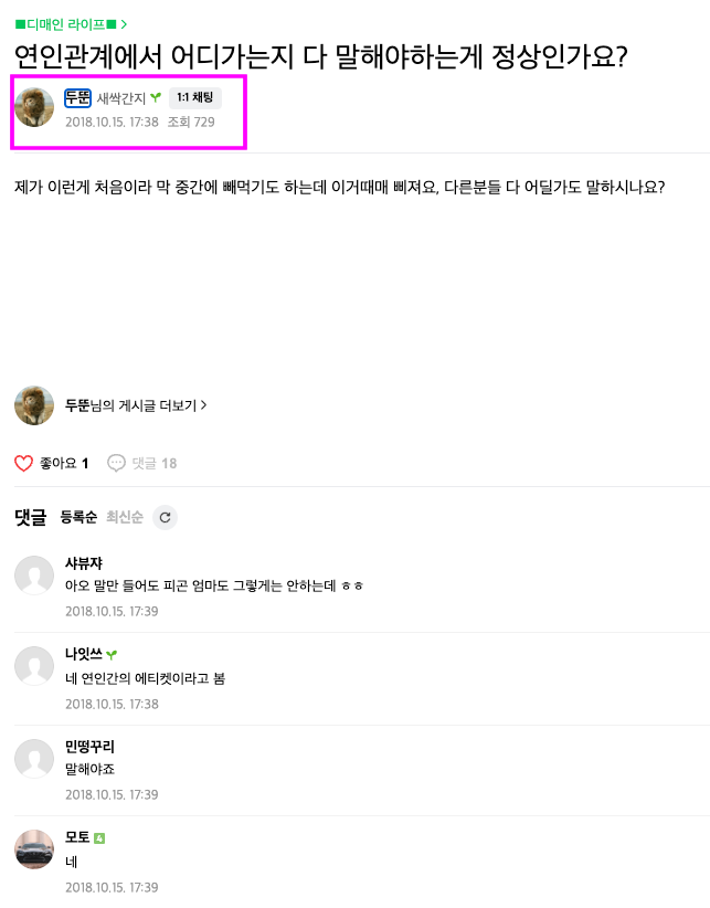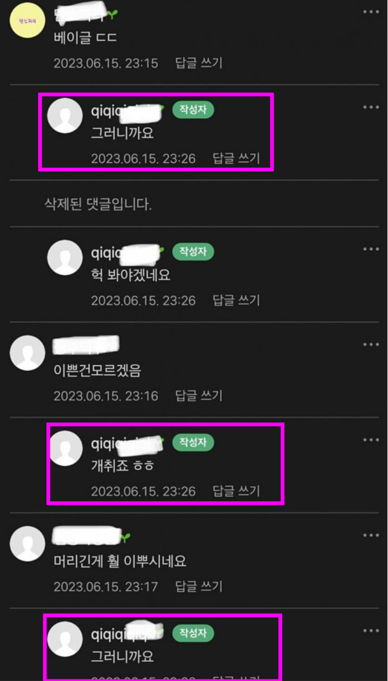 그리고 게시글에는 위와 같이 작성자 본인의 댓글을 달았는데요